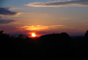On our way back to camp, the sun begins to set, and billowy pink and salmon clouds, as if from a Italian renaissance painting, fill the sky above a billion shades of green in meadow and forest, farm and churchyard. The sun is bright yellow-red on a field of purple-blue sky as it sinks below the tree line. Minna leaps and barks as we pass where rabbits abound, excuse the pun, but they really are everywhere, popping in and out of the roadside wild flowers, weeds and grasses.