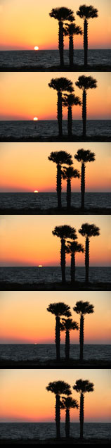 How many times have you watched the sun set? Not just noticed it setting: I mean really enjoyed it. Something folks on vacation often do, but otherwise we are mostly just too busy. Sunrises, moon rises and sunsets are always affected by external forces. The beauty can be in clouds, lovers, locations, occasions, but one thing always happens at a sunset—the sun sinks below the horizon and another day is gone. I love it when the sun begins sinking in earnest, the sky hues changing before our eyes from yellows to orange to violets. When the sun is low on the horizon it gradually picks up speed, sinking, sinking, sinking, faster and faster. The giant orange globe keeps getting larger and larger, rounder and rounder, Until that last moment—when that brilliant orb disappears below the horizon. As if it were never there. Like a smile lost… my heart always struggles—a bit lonely—when the sun has gone for the day.
